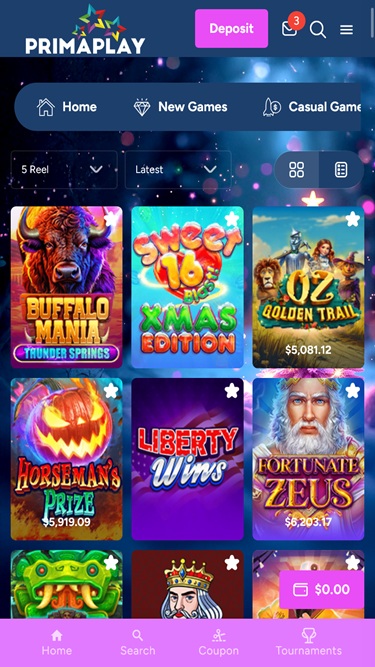 प्राइमा प्ले कैसीनो Real Time Gaming and Spinlogic Gaming द्वारा संचालित है और यह साइट एक वेब-आधारित प्लेटफ़ॉर्म का उपयोग करती है जो आपके इंटरनेट ब्राउज़र के माध्यम से लोड होता है। हालाँकि साइट अच्छी दिखती है, मैंने देखा कि स्क्रॉल करते समय नेविगेशन थोड़ा धीमा था। मोबाइल प्ले भी समर्थित है, जिससे आप अपने फ़ोन या टैबलेट पर खेल सकते हैं।