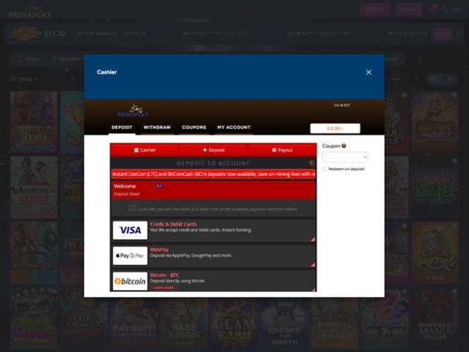 Primaplay Casino पर बैंकिंग विकल्प