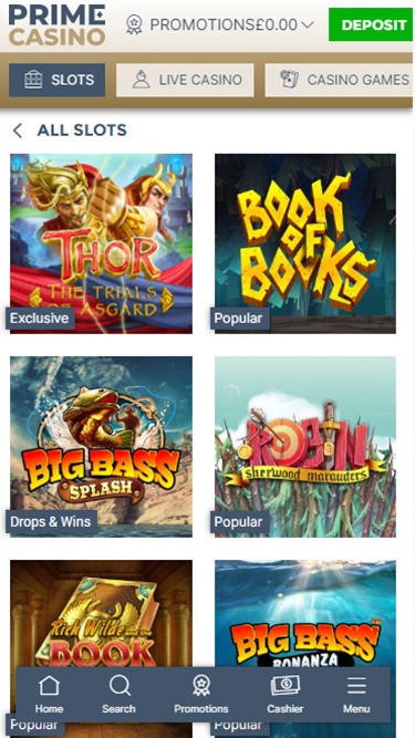 Prime Casino की लाइब्रेरी में Slots का बड़ा हिस्सा है, और सट्टेबाज़ों को कैसीनो में क्लासिक और वीडियो, दोनों तरह के स्लॉट मिलेंगे। इसके अलावा, कैसीनो Microgaming प्रोग्रेसिव जैकपॉट्स की पूरी श्रृंखला प्रदान करता है, जिसमें लाखों के इनाम जीते जा सकते हैं।