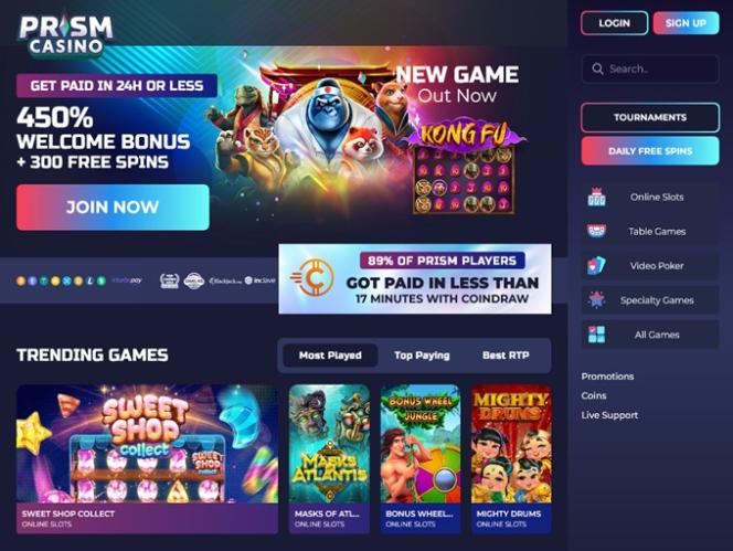 प्रिज्म कैसीनो Real Time Gaming and Spinlogic Gaming द्वारा संचालित है, जो खिलाड़ियों को उनके डाउनलोड करने योग्य सॉफ़्टवेयर के माध्यम से कैसीनो तक पहुंचने की अनुमति देता है, साथ ही एक वेब-आधारित प्लेटफ़ॉर्म के माध्यम से जो आपको अपने वेब ब्राउज़र के माध्यम से सीधे खेलने की अनुमति देता है।अन्य खेल