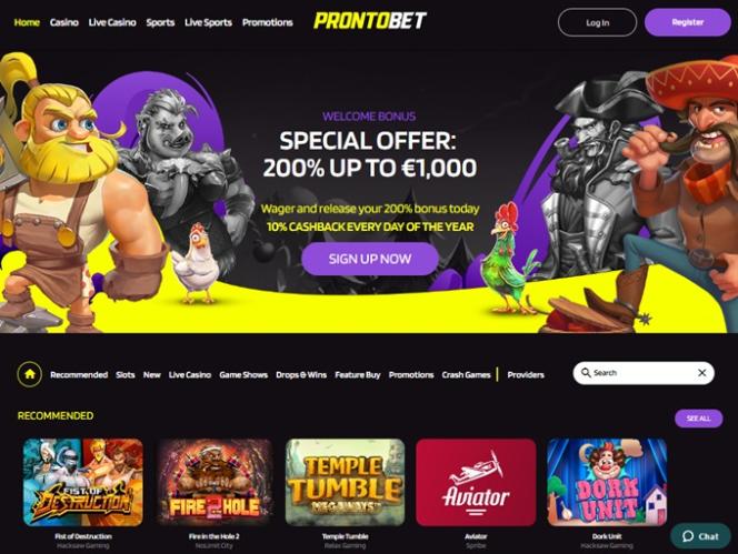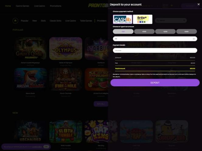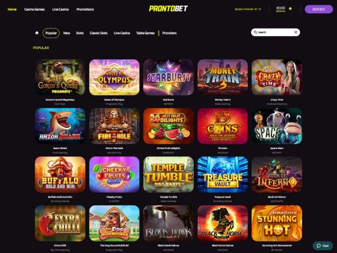 विश्वसनीय सॉफ़्टवेयर समाधान सहज गेमिंग अनुभव प्रदान करते हैं, जबकि उच्च-गुणवत्ता वाले खेलों की एक विस्तृत श्रृंखला जुआरियों के लिए मनोरंजन का स्रोत है। प्रोन्टोबेट का शीर्षक चयन निश्चित रूप से भरपूर मनोरंजन की गारंटी देता है।
