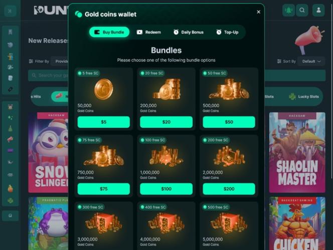 आकर्षक लॉयल्टी लाभों के अलावा, खिलाड़ी विभिन्न बोनस और प्रमोशन के ज़रिए अपने गेमिंग अनुभव को बेहतर बनाना पसंद करते हैं, और पंट बिल्कुल यही प्रदान करता है। नए खिलाड़ी अपने शुरुआती सत्रों की शुरुआत एक आकर्षक स्वागत बोनस के साथ कर सकते हैं जो उन्हें गोल्ड और स्वीप कॉइन प्रदान करेगा।
