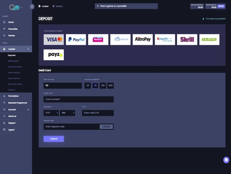 यह गेमिंग प्लेटफ़ॉर्म यूके, कनाडा, नॉर्वे, फ़िनलैंड और न्यूज़ीलैंड के खिलाड़ियों पर केंद्रित है और इसका प्लेटफ़ॉर्म अंग्रेज़ी, फ़्रेंच, फ़िनिश, जापानी और पुर्तगाली भाषाओं में उपलब्ध है। कैसीनो इंटरफ़ेस उपयोगकर्ता के अनुकूल और सरल है, लेकिन ग्राफ़िक रूप से यह थोड़ा ज़्यादा प्रामाणिक हो सकता है क्योंकि Q888Bets कई अन्य लोकप्रिय ऑनलाइन जुआ ब्रांडों के समान कैसीनो प्लेटफ़ॉर्म का उपयोग करता है।