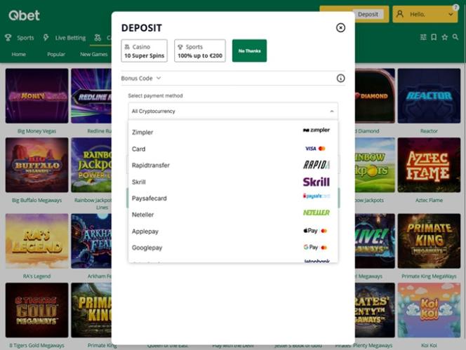 Qbet.com एक आधुनिक ऑनलाइन कैसीनो है जिसका उद्देश्य कनाडा के खिलाड़ियों के लिए कैसीनो गेमिंग विकल्पों और खेल सट्टेबाजी के आयोजनों की विस्तृत श्रृंखला प्रदान करके उनके लिए एक विशाल जुआ वातावरण तैयार करना है। यह ब्रांड असली पैसे वाले स्लॉट, क्रैश गेम्स, लाइव डीलर्स और टेबल गेम्स की एक विस्तृत श्रृंखला के साथ-साथ बोनस और पुरस्कारों से युक्त एक आकर्षक प्रचार योजना भी प्रदान करता है। यह भी ध्यान रखना ज़रूरी है कि कैसीनो बिटकॉइन जैसी क्रिप्टोकरेंसी स्वीकार करता है।
