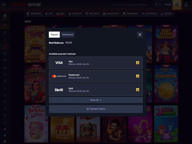 ऑपरेटर जर्मनी, फिनलैंड, नॉर्वे, कनाडा और न्यूजीलैंड के ऑनलाइन कैसीनो खिलाड़ियों को आकर्षित करने पर ध्यान केंद्रित करता है, लेकिन क्विकविन अन्य जुआ न्यायालयों के खिलाड़ियों का भी स्वागत करता है।