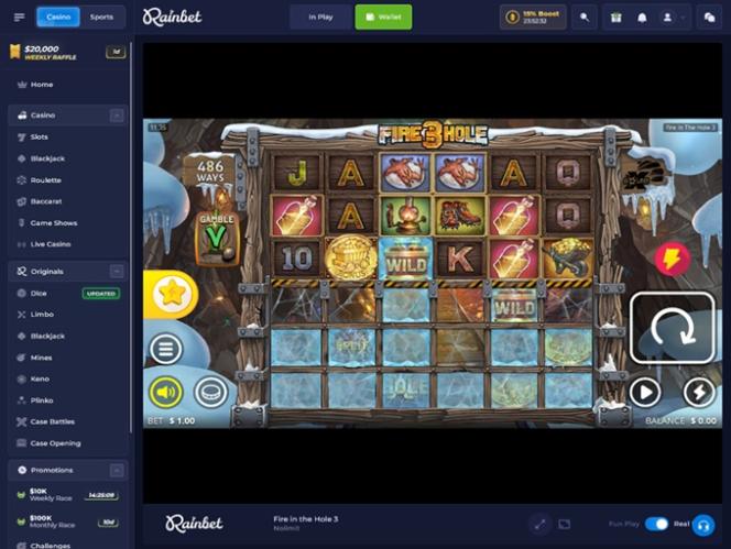 कैसीनो चुनने पर बाईं ओर एक मेनू खुलेगा जहाँ आपको स्लॉट, ब्लैकजैक , रूलेट, बैकारेट, गेम शो और लाइव कैसीनो जैसे कैसीनो गेम मिलेंगे। यहीं आपको ओरिजिनल मेनू भी मिलेगा, जिसमें डाइस, लिम्बो, ब्लैकजैक, माइंस, केनो, प्लिंको , केस बैटल और केस ओपनिंग जैसे विकल्प शामिल हैं।