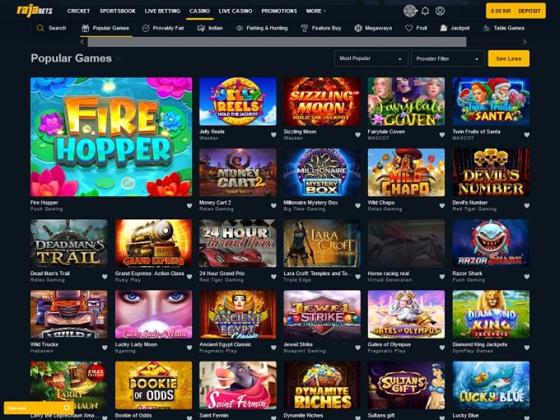 सभी ऑनलाइन कैसीनो गेम निम्नलिखित श्रेणियों में शामिल हैं: लोकप्रिय गेम, प्रोवेबल फेयर, इंडियन, फिशिंग एंड हंटिंग, 7 फीचर बाय, मेगावेज़, फ्रूट, जैकपॉट।