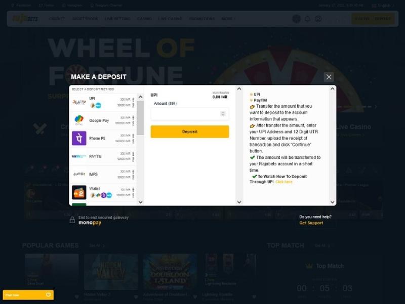 पंजीकरण प्रक्रिया त्वरित और सरल है; इसमें केवल एक चरण है जो सीधे राजाबेट्स कैसीनो की लॉबी तक ले जाता है।