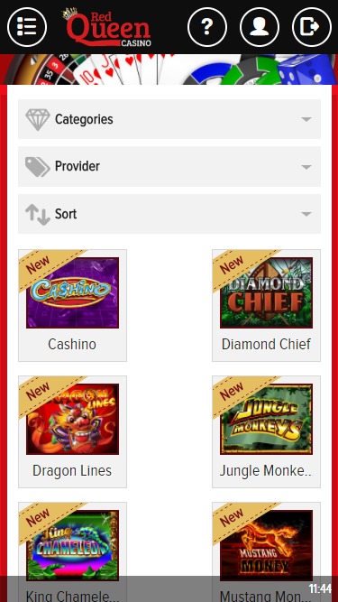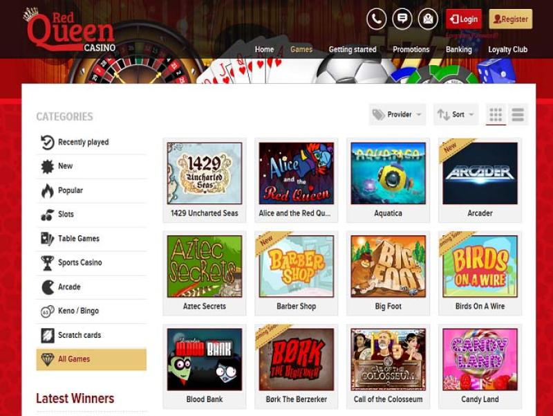 रेड क्वीन कैसीनो 1x2gaming, Big Time Gaming, ELK Studios, lightningboxgames, Thunderkick, Realistic Games, Ainsworth, Aristocrat, Leander Games, NextGen, SG Interactive, Scientific Games, Side City Studios, Iron Dog Studio and ReelPlay द्वारा संचालित है, जो खिलाड़ियों को अपने वेब-आधारित प्लेटफ़ॉर्म के माध्यम से विभिन्न प्रकार के गेम खेलने का अवसर प्रदान करता है। रेड क्वीन में खेलने के इच्छुक खिलाड़ी अपने वेब ब्राउज़र या अपने मोबाइल डिवाइस के माध्यम से ऐसा कर सकते हैं, क्योंकि यह कैसीनो मोबाइल प्ले को सपोर्ट करता है।अन्य खेल
