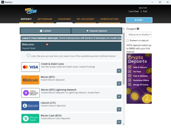 रील स्पिन कैसीनो एक ऑनलाइन सट्टेबाजी साइट है जिसकी स्थापना 2013 में कार्मेल मीडिया ग्रुप द्वारा की गई थी। यह कैसीनो संयुक्त राज्य अमेरिका सहित दुनिया भर के क्षेत्रों में सेवाएँ प्रदान करता है, और इसमें ऐसे खेलों का एक सेट है जो अधिकांश अमेरिकी अनुकूल साइटों पर देखे जाते हैं। कैसीनो का प्रबंधन बहुत अच्छा है और भुगतान समय बहुत तेज़ है, साथ ही बोनस की शर्तें भी अच्छी हैं, जो रील स्पिन कैसीनो को निश्चित रूप से आपके समय के लायक बनाती हैं।