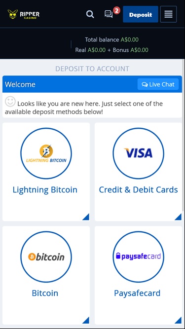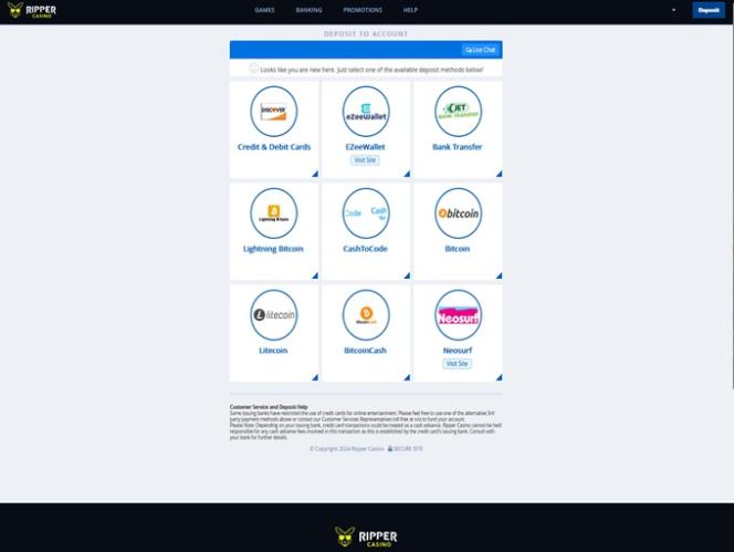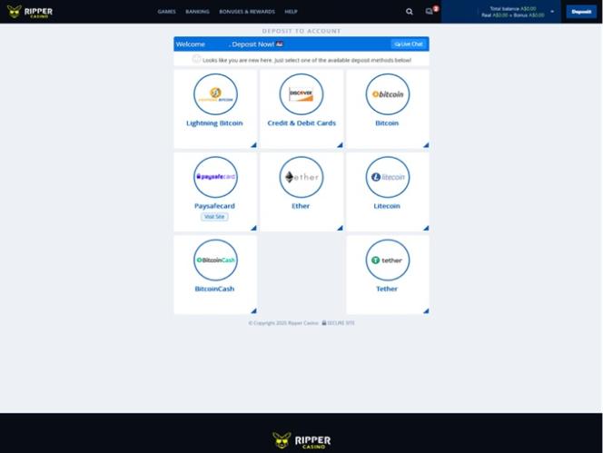 Ripper Casino पर बैंकिंग विकल्प