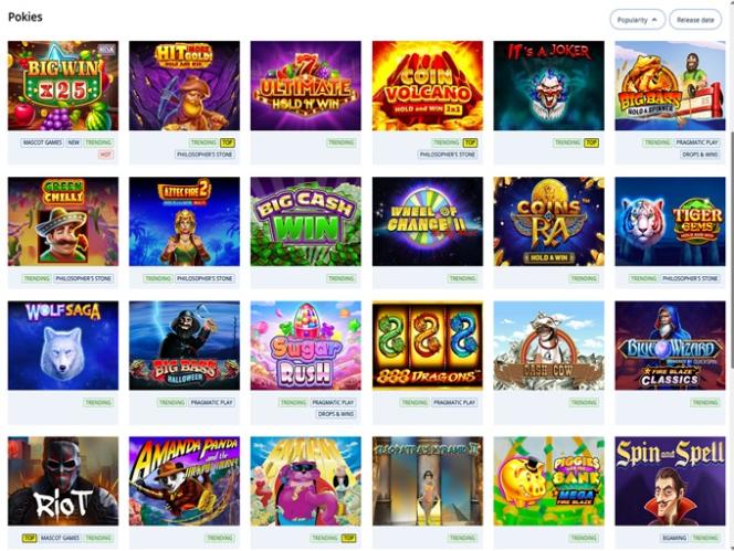 यह ऑनलाइन ब्रांड सॉफ्टवेयर प्रदाताओं द्वारा बनाए गए कुछ शीर्ष कैसीनो स्लॉट और टेबल गेम प्रस्तुत करता है जैसे: राइवल गेमिंग, बूमिंग गेम्स और एरो एज ।