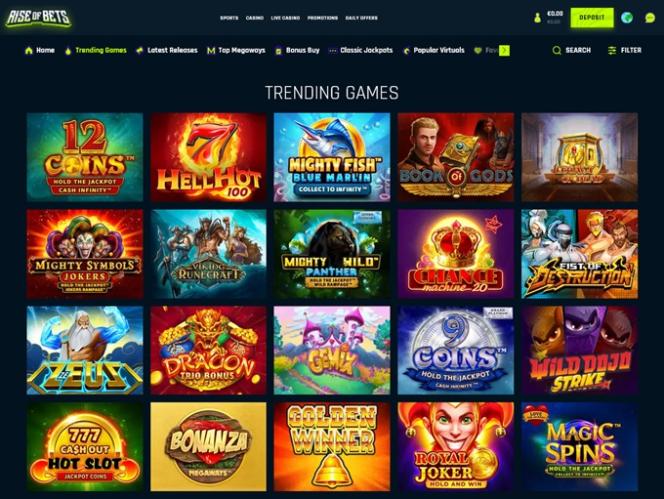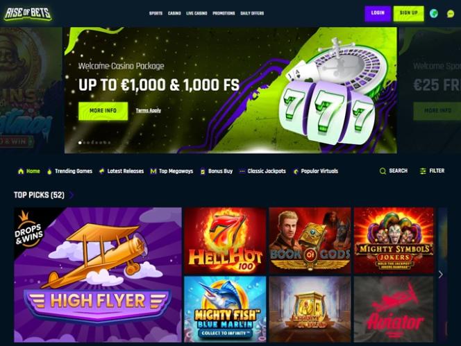 राइज़ ऑफ़ बेट्स कैसीनो एक पूर्णतः विकसित ऑनलाइन कैसीनो है जिसका उद्देश्य अपने खिलाड़ियों को वास्तविक धन से जुआ खेलने का संपूर्ण अनुभव प्रदान करना है। खिलाड़ी हज़ारों अनोखे कैसीनो गेम्स ब्राउज़ कर सकते हैं, जिनमें कई ऑनलाइन स्लॉट, टेबल गेम, लाइव डीलर और कुछ मूल रिलीज़ शामिल हैं। इसके अलावा, वेबसाइट पर एक विशाल स्पोर्ट्सबुक भी है जिसमें कई स्पोर्ट्स बेटिंग विकल्प और वर्चुअल स्पोर्ट्स उपलब्ध हैं।