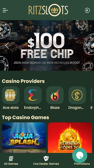 रिट्जस्लॉट्स कैसीनो प्रतिष्ठित सॉफ्टवेयर प्रदाताओं के साथ साझेदारी करता है और अग्रणी गेमिंग स्टूडियो जैसे प्रैगमैटिक प्ले , एंडोर्फिना और रियलटाइम गेमिंग आदि से शीर्षकों का विविध चयन प्रदान करता है।