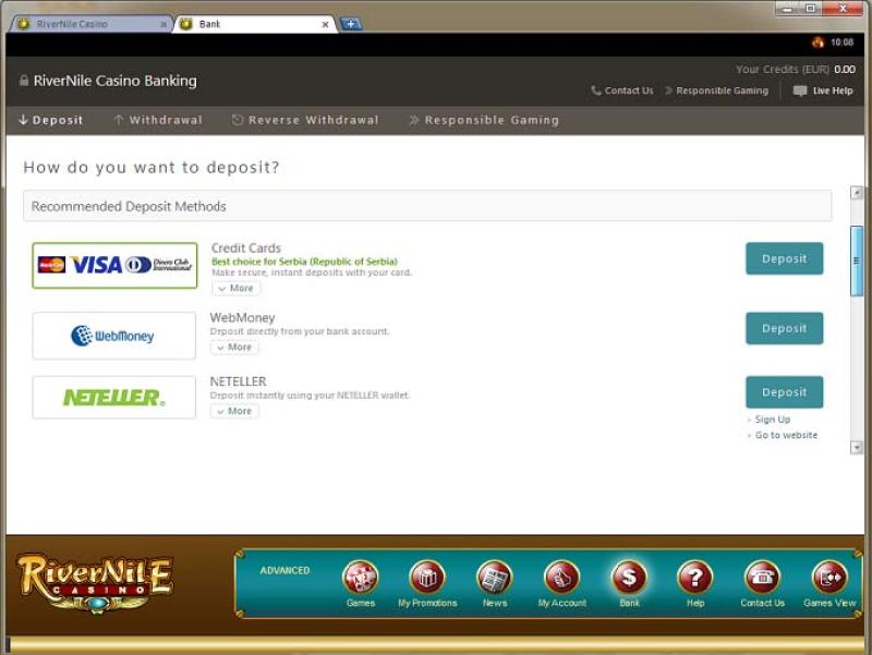 River Nile Casino निम्नलिखित देशों के खिलाड़ियों को स्वीकार नहीं करता है: Alabama, अलास्का, एरिज़ोना, अर्कांसस, बेल्जियम, कैलिफोर्निया, कोलोराडो, कनेक्टिकट, साइप्रस, डीसी, डेलावेयर, डेनमार्क, फ्लोरिडा, फ्रांस, फ्रेंच गुयाना, फ़्रेंच पोलिनेशिया, जॉर्जिया, ग्रीस, हवाई, इडाहो, इलिनोइस, इंडियाना, आयोवा, इटली, कान्सास, केंटकी, लुइसियाना, मैंने, मैरीलैंड, मैसाचुसेट्स, मिशिगन, मिनेसोटा, मिसिसिपी, मिसौरी, MONTANA, नेब्रास्का, नेवादा, न्यू हैम्पशायर, न्यू जर्सी, न्यू मैक्सिको, न्यूयॉर्क, उत्तरी केरोलिना, नॉर्थ डकोटा, ओहियो, ओकलाहोमा, ओंटारियो, ओरेगन, पेंसिल्वेनिया, रोड आइलैंड, दक्षिण अफ्रीका, दक्षिण कैरोलिना, दक्षिणी डकोटा, स्पेन, टेनेसी, टेक्सास, यूनाइटेड किंगडम, संयुक्त राज्य अमेरिका, यूटा, वरमोंट, वर्जीनिया, वाशिंगटन, वेस्ट वर्जीनिया, विस्कॉन्सिन और व्योमिंग.