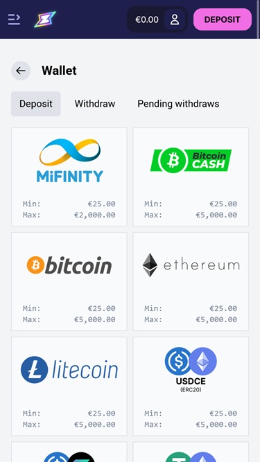 कैसीनो फिएट मुद्राओं और क्रिप्टोकरेंसी दोनों को स्वीकार करता है।
