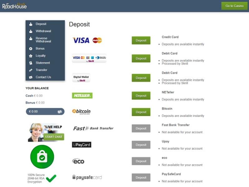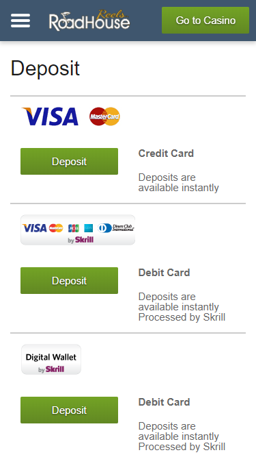 RoadHouse Reels के नियम और शर्तें भले ही आक्रामक न लगें, लेकिन कैसीनो की हरकतें दर्शाती हैं कि कुराकाओ का आवासीय क्षेत्र एक मज़ाक है, क्योंकि भुगतान में लंबी देरी और अपनी जीत पाने के लिए कई प्रक्रियाओं का कैसीनो पर कोई असर नहीं पड़ता। यहाँ बैंकिंग तब तक सामान्य लगती है जब तक आप सीमा और लंबे भुगतान समय तक नहीं पहुँच जाते। कैसीनो वायर ट्रांसफर, चेक, मास्टरकार्ड, Skrill , नेटेलर, Paysafecard और वीज़ा के माध्यम से जमा और निकासी का समर्थन करता है।