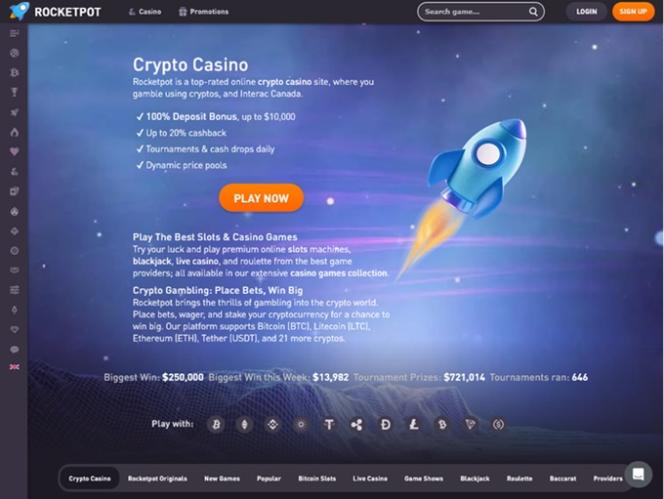 रॉकेटपॉट कैसीनो एक सुस्थापित क्रिप्टो-फ्रेंडली ऑनलाइन कैसीनो है जिसका लक्ष्य अपने सभी सदस्यों को सर्वोत्तम संभव अनुभव प्रदान करना है! यह दुनिया के अग्रणी सॉफ्टवेयर प्रदाताओं द्वारा संचालित 3,000 से ज़्यादा बेहतरीन गेम्स का घर है और विभिन्न बोनस और प्रमोशन आपके गेमप्ले को बेहतर बनाने की पूरी कोशिश करेंगे!