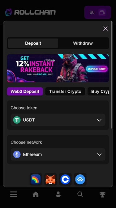सदस्य बनने और प्लेयर डैशबोर्ड तक पहुँच प्राप्त करने के लिए, आपको एक खाता बनाना होगा। पंजीकरण प्रक्रिया बेहद आसान और उपयोगकर्ता के अनुकूल है, क्योंकि खिलाड़ी अपने क्रिप्टो वॉलेट को कनेक्ट करके तुरंत कैसीनो में शामिल हो सकते हैं। इसके अलावा, जो जुआरी ईमेल से पंजीकरण करना पसंद करते हैं, वे इस सरल तरीके का उपयोग कर सकते हैं, साथ ही अतिरिक्त लाभ के लिए रेफरल कोड दर्ज करने का विकल्प भी उपलब्ध है। Google या X खाते से सोशल नेटवर्क लॉगिन करने से भी जुड़ना और भी आसान हो जाता है, जिससे उपयोगकर्ता कुछ ही क्लिक में शुरुआत कर सकते हैं।