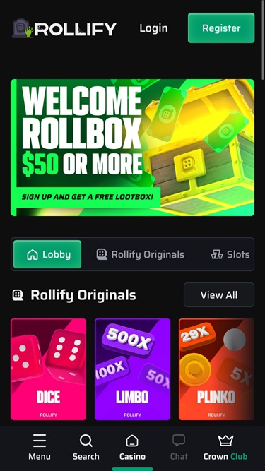 रोलिफ़ाई कैसीनो अपने कैसीनो सदस्यों के प्रति आभार व्यक्त करना पसंद करता है, और क्राउन क्लब के लॉयल्टी प्रमोशन और लाभ आपको व्यस्त और मनोरंजित रखेंगे। अपने हर स्पिन और दांव पर बेहतरीन उपहारों और निम्नलिखित स्तरों पर आगे बढ़ने के अवसरों की अपेक्षा करें : नो क्राउन, पेपर क्राउन, वुडन क्राउन, ब्रॉन्ज़ क्राउन, आयरन क्राउन, कार्बन क्राउन, सिल्वर क्राउन, गोल्ड क्राउन, प्लैटिनम क्राउन, डायमंड क्राउन, रूबी क्राउन, एमराल्ड क्राउन, सैफायर क्राउन और ओब्सीडियन क्राउन।