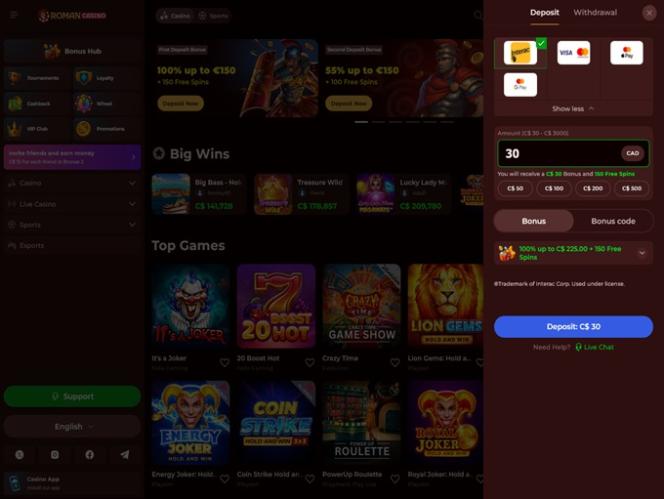 रोमन कैसीनो एक ऑनलाइन कैसीनो और स्पोर्ट्स बेटिंग वेबसाइट है जो कुराकाओ गेमिंग कंट्रोल बोर्ड द्वारा लाइसेंस प्राप्त और विनियमित है। यह कोस्टा रिका के कानूनों के तहत निगमित एक अनुभवी iGaming कंपनी द्वारा संचालित है। अगर आप नॉर्वे, पोलैंड, आयरलैंड, बेल्जियम, कनाडा या जर्मनी से हैं, तो आपको इस कैसीनो को देखने के लिए अपना कुछ समय ज़रूर निकालना चाहिए, लेकिन अगर आप किसी अन्य क्षेत्र से हैं, तो भी यह प्लेटफ़ॉर्म आपके लिए दिलचस्प होगा। इस आशाजनक गेमिंग गंतव्य में घूमना और भी आसान हो जाता है क्योंकि वेबसाइट अंग्रेजी, फ्रेंच, जर्मन, स्पेनिश, नॉर्वेजियन, ग्रीक आदि सहित कई विश्व भाषाओं में उपलब्ध है, जो सभी अंतरराष्ट्रीय कैसीनो खिलाड़ियों के लिए बहुत अच्छा है।