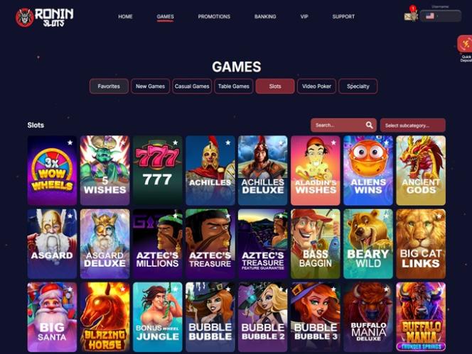 यह कहना गलत नहीं होगा कि रोनिन स्लॉट्स लाइब्रेरी में गेम्स की भरमार है, लेकिन यह कहना उचित होगा कि उपलब्ध टाइटल्स यथासंभव विविधता प्रदान करते हैं। इस पोर्टफोलियो को उपलब्ध कराने वाले Real Time Gaming and Spinlogic Gaming हैं।