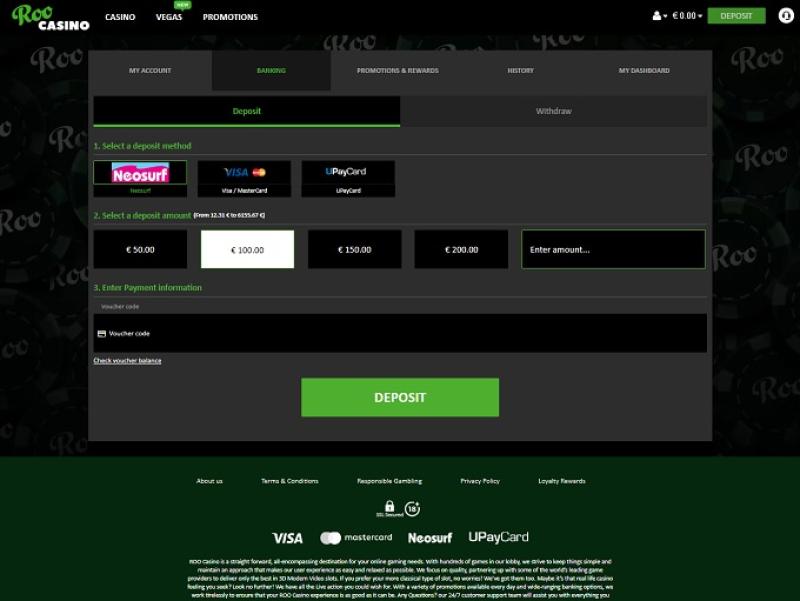 रू की बैंकिंग प्रणाली काफी सीमित है, जिसका मुख्य कारण नियामकों द्वारा ऑस्ट्रेलियाई खिलाड़ियों पर लगाए गए प्रतिबंध हैं। कैसीनो में जीत पर 48 घंटे का समय लगता है, जिसके बाद साइट को भुगतान की प्रक्रिया में कुछ दिन और लग जाते हैं। €10,000 की निकासी सीमा भी है जिसे हर 10 दिन में निकाला जा सकता है।