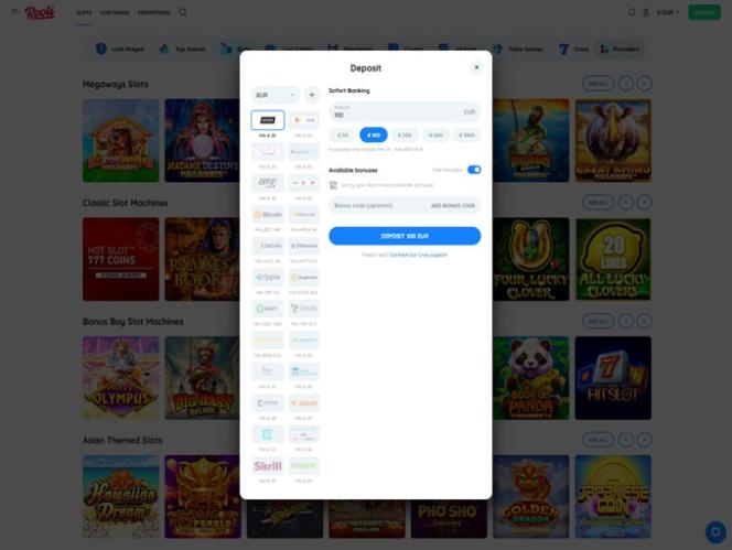 Rooli Casino पर बैंकिंग विकल्प