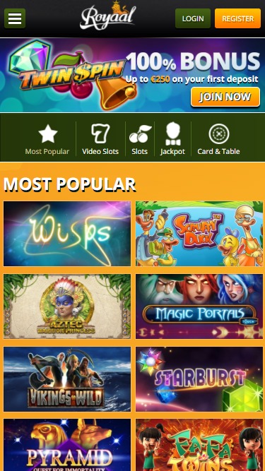 रॉयल कैसीनो Net Entertainment, BetSoft, iSoftBet, Play'n GO, Vivo Gaming and Yggdrasil द्वारा संचालित है, और कैसीनो अपने गेम एक वेब-आधारित इंस्टेंट प्ले प्लेटफ़ॉर्म के माध्यम से प्रदान करता है जो आपकी हार्ड ड्राइव पर बोझिल सॉफ़्टवेयर डाउनलोड करने की आवश्यकता को समाप्त करता है। कैसीनो मोबाइल प्ले को भी सपोर्ट करता है, जिससे आप अपने स्मार्टफ़ोन और टैबलेट के माध्यम से गेम खेल सकते हैं।अन्य खेल