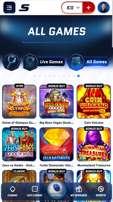 शानदार लेआउट वाली आकर्षक वेबसाइट के अलावा, यह जुआ साइट अपने सभी गेम और गतिविधियों को प्रदर्शित करने में कोई कसर नहीं छोड़ती है। खिलाड़ियों को ऑनलाइन स्लॉट, लाइव डीलर और टेबल गेम से लेकर इंस्टेंट क्रैश गेम तक, हजारों गेमों की एक विशाल लाइब्रेरी तक पहुंच प्राप्त होगी।