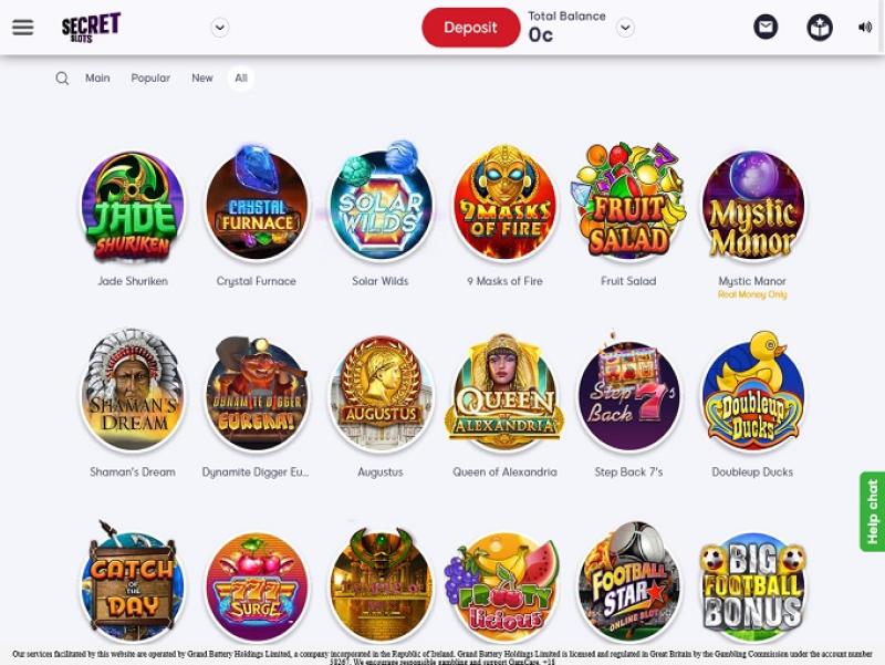 सीक्रेटस्लॉट्स कैसीनो में स्लॉट्स की अहम भूमिका है, क्योंकि यह साइट ड्रैगनफ़िश और नेट एंटरटेनमेंट, दोनों के गेम उपलब्ध कराती है। खिलाड़ियों को वीडियो स्लॉट्स के साथ-साथ कुछ क्लासिक गेम्स का भी अच्छा संग्रह मिलेगा।