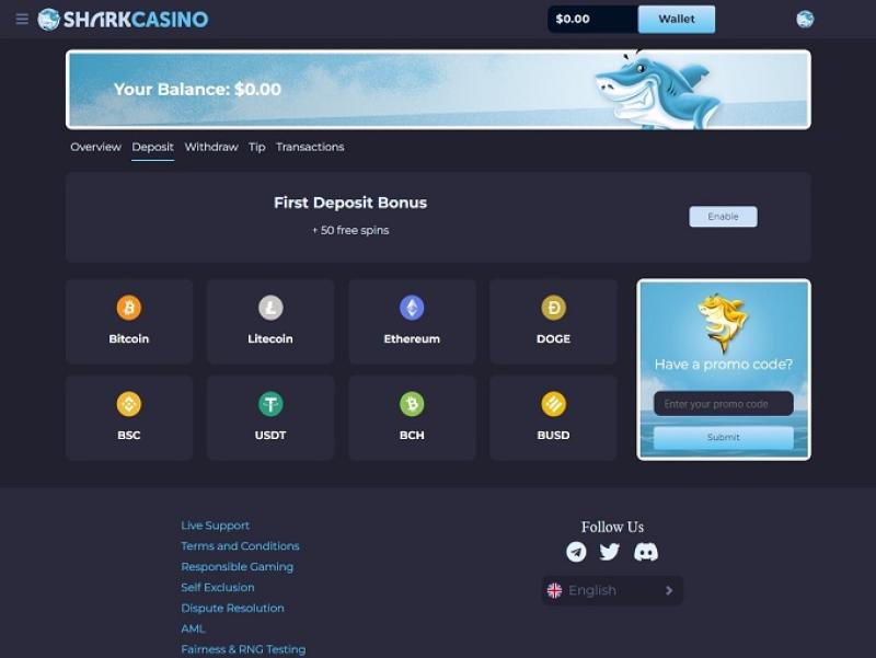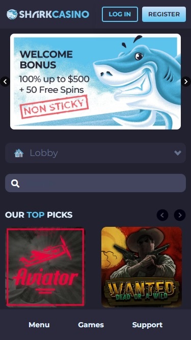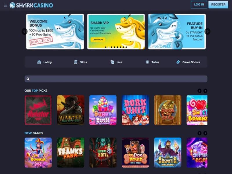 कैसीनो प्लेटफ़ॉर्म गहरे नीले समुद्री रंग के पैटर्न का उपयोग कर रहा है, जो शार्क नामक ब्रांड के लिए बिल्कुल तार्किक विकल्प है। यह दिलचस्प, अच्छी तरह से डिज़ाइन की गई और पूरी तरह कार्यात्मक वेबसाइट सभी उपकरणों, डेस्कटॉप और मोबाइल के लिए उत्तरदायी और अनुकूलित है और इसमें वे सभी गेम हैं जिनके लिए हम सभी यहाँ हैं - सबसे आगे और बीच में!