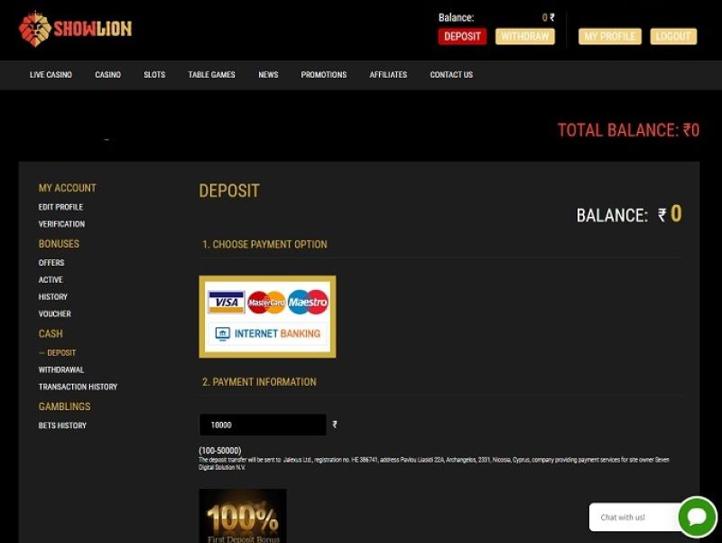 Showlion Casino निम्नलिखित देशों के खिलाड़ियों को स्वीकार नहीं करता है: अफ़ग़ानिस्तान, Alabama, अलैंड द्वीप समूह, अलास्का, अल्बानिया, अल्बर्टा, आइल ऑफ़, एलजीरिया, अमेरिकी समोआ, एंडोरा, अंगोला, एंगुइला, अंटार्कटिका, अण्टीगुआ और बारबूडा, अर्जेंटीना, एरिज़ोना, अर्कांसस, आर्मीनिया, अरूबा, ऑस्ट्रेलिया, ऑस्ट्रिया, आज़रबाइजान, बहामा, बहरीन, बांग्लादेश, बारबाडोस, बेलोरूस, बेल्जियम, बेलीज़, बेनिन, बरमूडा, भूटान, बोलीविया, बोस्निया और हर्जेगोविना, बोत्सवाना, बौवेट द्वीप, ब्राज़िल, ब्रिटिश कोलंबिया, ब्रिटिश हिंद महासागर क्षेत्र, ब्रुनेई, बुल्गारिया, बुर्किना फासो, बुस्र्न्दी, कैलिफोर्निया, कंबोडिया, कैमरून, कनाडा, केप वर्ड, केमन द्वीपसमूह, केन्द्रीय अफ़्रीकी गणराज्य, काग़ज़ का टुकड़ा, चिली, चीन, क्रिसमस द्वीप, कोकोस (कीलिंग) द्वीप समूह, कोलंबिया, कोलोराडो, कोमोरोस, कांगो, कांगो लोकतांत्रिक गणराज्य, कनेक्टिकट, कुक आइलैंड्स, कोस्टा रिका, हाथीदांत का किनारा, क्रोएशिया, क्यूबा, कुराकाओ, साइप्रस, चेक रिपब्लिक, डीसी, डेलावेयर, डेनमार्क, ज़िबूटी, डोमिनिका, डोमिनिकन गणराज्य, इक्वेडोर, मिस्र, अल साल्वाडोर, इक्वेटोरियल गिनी, इरिट्रिया, एस्तोनिया, इथियोपिया, फ़ॉकलैंड द्वीप समूह (माल्विनास), फ़रो द्वीप समूह, फिजी, फिनलैंड, फ्लोरिडा, फ्रांस, फ्रेंच गुयाना, फ़्रेंच पोलिनेशिया, फ्रांसीसी दक्षिणी क्षेत्र, गैबॉन, गाम्बिया, जॉर्जिया, जॉर्जिया, जर्मनी, घाना, जिब्राल्टर, ग्रीस, ग्रीनलैंड, ग्रेनेडा, ग्वाडेलोप, गुआम, ग्वाटेमाला, गिनी, गिनी-बिसाऊ, Guyana, हैती, हवाई, हर्ड द्वीप और मैकडोनाल्ड द्वीप, होंडुरस, हांगकांग, हंगरी, आइसलैंड, इडाहो, इलिनोइस, इंडियाना, इंडोनेशिया, आयोवा, ईरान, इराक, आयरलैंड, मैन द्वीप, इज़राइल, इटली, जमैका, जापान, जर्सी, जॉर्डन, कान्सास, कजाखस्तान, केंटकी, केन्या, किरिबाती, कोरिया, लोकतांत्रिक जनवादी गणराज्य, कोरिया गणराज्य, कुवैट, किर्गिज़स्तान, लाओस, लातविया, लेबनान, लिसोटो, लाइबेरिया, लीबिया, लिकटेंस्टाइन, लिथुआनिया, लुइसियाना, लक्समबर्ग, मकाउ, मेडागास्कर, मैंने, मलावी, मलेशिया, मालदीव, माली, माल्टा, मैनिटोबा, मार्शल द्वीपसमूह, मार्टीनिक, मैरीलैंड, मैसाचुसेट्स, मॉरिटानिया, मॉरीशस, मैयट, मेक्सिको, मिशिगन, माइक्रोनेशिया, संघीय राज्य, मिनेसोटा, मिसिसिपी, मिसौरी, मोल्दाविया, मोनाको, मंगोलिया, MONTANA, मोंटेनेग्रो, मोंटेसेराट, मोरक्को, मोज़ाम्बिक, म्यांमार, नामिबिया, नाउरू, नेब्रास्का, नेपाल, नीदरलैंड, नीदरलैंड एंटिलीज़, नेवादा, कनाडा का एक प्रांत, नया केलडोनिया, न्यू हैम्पशायर, न्यू जर्सी, न्यू मैक्सिको, न्यूयॉर्क, न्यूज़ीलैंड, न्यूफाउंडलैंड और लैब्राडोर, निकारागुआ, नाइजर, नाइजीरिया, नियू, नॉरफ़ॉक द्वीप, उत्तरी केरो