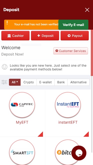 सभी लेन-देन ZAR में हैं, और यदि आप निकासी का अनुरोध करना चाहते हैं, तो कैसीनो का खाता विभाग शनिवार, रविवार और छुट्टियों को छोड़कर, 2 दिनों के भीतर इसे संसाधित कर देगा। हालाँकि, बिना जमा बोनस के साथ उच्च दांव लगाने की आवश्यकताएँ होती हैं, और बोनस के साथ खेलते समय, ब्लैकजैक, वीडियो पोकर, रूलेट, पोंटून, बिंगो, क्रेप्स, वॉर, सिक-बो और बैकारेट शामिल नहीं होते हैं।