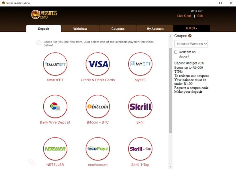 Silver Sands Casino (ZAR) पर बैंकिंग विकल्प