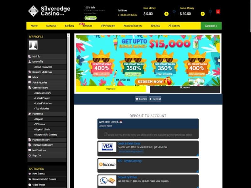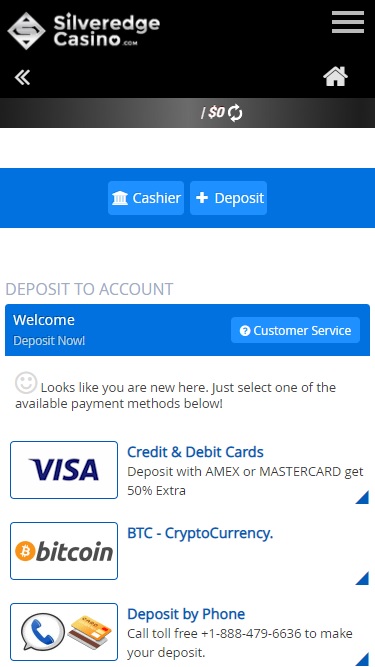 Silveredge Casino पर बैंकिंग विकल्प
