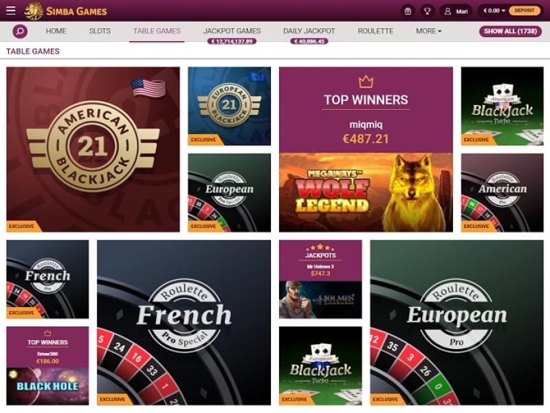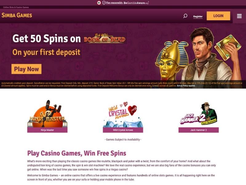 सिम्बा गेम्स की सूची में वीडियो स्लॉट्स की एक बड़ी संख्या है, जिसमें बैली, नेट एंट, डब्ल्यूएमएस और नेक्स्टजेन के गेम्स शामिल हैं, जो ज़मीनी कैसीनो के साथ-साथ ऑनलाइन गेम्स के लिए भी डिज़ाइन किए गए गेम्स का एक संग्रह प्रस्तुत करते हैं। क्लासिक स्लॉट भी उपलब्ध हैं, हालाँकि नए स्टाइल के 5-रील गेम्स जितने नहीं। सिम्बा गेम्स में प्रोग्रेसिव जैकपॉट भी उपलब्ध हैं, जहाँ कैसीनो नेट एंट जैकपॉट प्रदान करता है, जिनकी कीमत लाखों डॉलर है, जिसमें मेगा फॉर्च्यून, कॉस्मिक फॉर्च्यून, हॉल ऑफ गॉड्स और अरेबियन नाइट्स जैकपॉट सभी शामिल हैं।