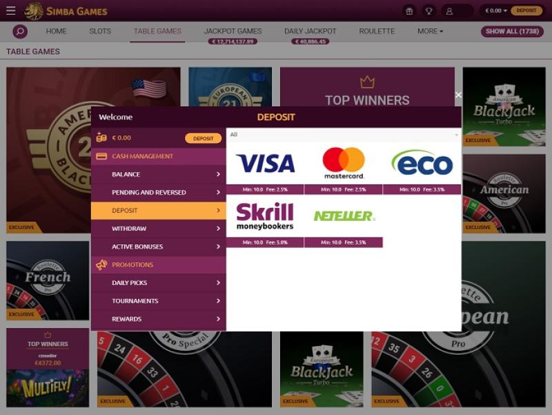 सिम्बा गेम्स कैसीनो के नियमों और शर्तों को ध्यान से देखें तो ऐसा कुछ भी नहीं है जो खिलाड़ियों के प्रति अनुचित या आक्रामक हो। जमा और निकासी के लिए वीज़ा, मास्टरकार्ड, नेटेलर, स्क्रिल, एंट्रोपे, पेपाल, वायर ट्रांसफर, पोली आदि बैंकिंग विकल्प उपलब्ध हैं। बैंकिंग समय बहुत अच्छा है, ई-वॉलेट उसी दिन भरे जा सकते हैं, क्रेडिट कार्ड और वायर ट्रांसफर भी 2-7 कार्यदिवसों के बीच पूरे हो जाते हैं। ध्यान दें कि मासिक निकासी सीमा $10,000 है।