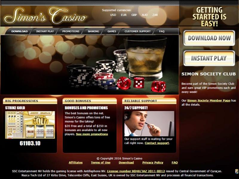 Simon Says Casino एक ऑनलाइन सट्टेबाजी साइट है जिसका स्वामित्व और संचालन सिल्वरस्टोन ओवरसीज़ लिमिटेड के पास है। इसकी स्थापना 2007 में हुई थी और यह American सट्टेबाजी बाज़ार के साथ-साथ अन्य क्षेत्रों में भी सेवाएँ प्रदान करता है। इस कैसीनो ने अपने Rival खेलों और जीत पर $2,000 की कम दैनिक निकासी सीमा के लिए ख्याति अर्जित की है।कैसीनो जानकारी