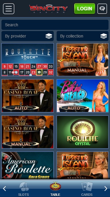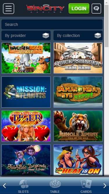 सिन सिटी कैसीनो Microgaming, Net Entertainment, 1x2gaming, Big Time Gaming, Genesis Gaming, iSoftBet, Oryx, Quickspin, Rabcat, GameArt, Games Global, 2by2 Gaming, bluberi, Games Warehouse, NextGen, RCT Gaming and HollywoodTV द्वारा संचालित है, और इसके कैसीनो गेम एक इंस्टेंट प्ले, वेब-आधारित प्लेटफ़ॉर्म के माध्यम से प्रदान किए जाते हैं जो आपको सीधे अपने वेब ब्राउज़र के माध्यम से गेम खेलने की अनुमति देता है। इसमें मोबाइल सपोर्ट भी शामिल है, जिससे आप सीधे अपने स्मार्टफोन या टैबलेट के माध्यम से स्लॉट और टेबल गेम खेल सकते हैं।