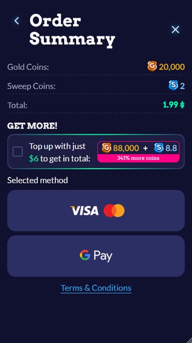 ऑनलाइन स्लॉट्स और क्रैश गेम्स की एक मज़बूत सूची के अलावा, यह सोशल कैसीनो अपने खिलाड़ियों को ढेरों शानदार प्रमोशन और बोनस देने में भी कोई कसर नहीं छोड़ता। आप स्वागत बोनस, दैनिक लॉगिन रिवॉर्ड, दैनिक व्हील स्पिन, सोशल बोनस और रेफ़रल बोनस का दावा कर सकते हैं।