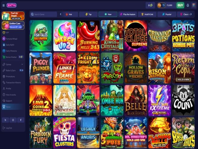 जब विशिष्ट प्रकार के खेलों की बात आती है, तो आप सिक्सटी6 कैसीनो में खेल सकते हैं, और ऑनलाइन स्लॉट्स आपका ज़्यादातर समय ले लेंगे। कई अन्य स्वीपस्टेक्स कैसीनो की तरह, यह ब्रांड मुख्य रूप से स्लॉट्स की एक विस्तृत श्रृंखला पर केंद्रित है, जिसमें क्लस्टर पेज़, जैकपॉट, मेगावेज़, होल्ड एन' लिंक्स, क्लासिक स्लॉट्स और बोनस बाय सहित कई श्रेणियां और शैलियाँ शामिल हैं।