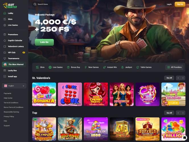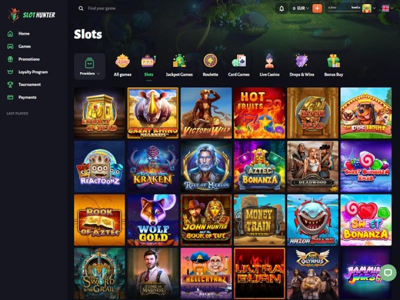 स्लॉट हंटर एक ऑनलाइन सट्टेबाजी साइट है जिसका संचालन एन1 इंटरएक्टिव लिमिटेड द्वारा किया जाता है और यह जू कैसीनो, एन1कैसीनो और लेडी हैमर की सहयोगी साइट के रूप में कार्य करती है। इस कैसीनो में खेलों की एक विशाल लाइब्रेरी के साथ-साथ अच्छा बैंकिंग समय भी है, हालाँकि कुछ अपेक्षा से ज़्यादा बोनस दांव लगाने की ज़रूरतें और कमज़ोर कॉम्प सिस्टम स्लॉट हंटर को ज़्यादातर सट्टेबाज़ों के लिए एक शीर्ष ऑनलाइन कैसीनो के रूप में उभरने से रोकते हैं।कैसीनो जानकारी