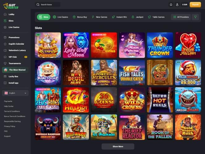मानक कैसीनो खेलों के अलावा स्लॉट हंटर गेम्स का एक पूर्ण लाइव डीलर सूट प्रदान करता है, जिसमें ब्लैकजैक, बैकारेट, रूलेट, ड्रीम व्हील, ड्रॉ गेम्स और बहुत कुछ शामिल है।खिलाड़ी के मुद्दे