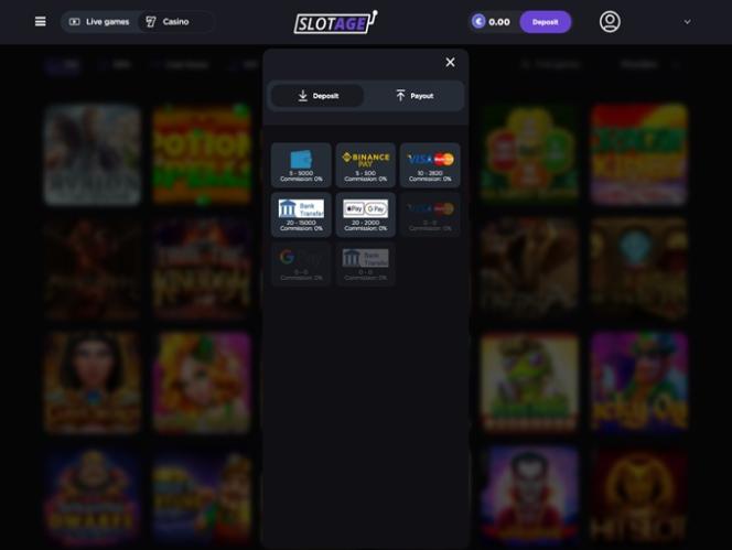 स्लॉटेज कैसीनो अपने बैंकिंग प्रदर्शन में कई फिएट मुद्राओं का समर्थन करता है, जिनमें कनाडाई डॉलर, यूरो और अमेरिकी डॉलर आदि शामिल हैं।