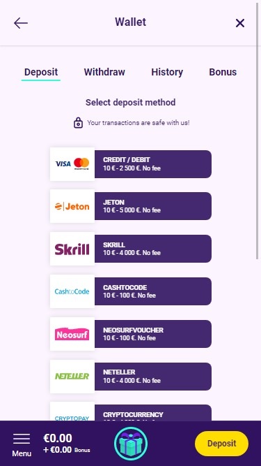 इस जुआ साइट का इंटरफ़ेस बेहद सुंदर और सुव्यवस्थित है। नेवी-ब्लू और नियॉन फ़िरोज़ा रंग इस उपयोगकर्ता-अनुकूल ऑनलाइन कैसीनो प्लेटफ़ॉर्म पर एक दिलचस्प मेल हैं जो इसे और भी खास बनाता है। बाएँ साइडबार में कैसीनो मेनू और कई सुव्यवस्थित टैब हैं जो गेम्स और अन्य सभी कैसीनो सेक्शन तक आसान पहुँच प्रदान करते हैं।
