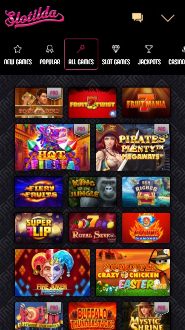 स्लॉटिल्डा Microgaming, Net Entertainment, BetSoft, Amatic Industries, Big Time Gaming, Genesis Gaming, iSoftBet, lightningboxgames, Oryx, Play'n GO, Rabcat, Yggdrasil, Realistic Games, Pragmatic Play, Red Tiger Gaming, Skillzzgaming, Fantasma Games, Kalamba, Triple Edge Studios, Northern Lights Gaming, Stormcraft Studios, Dreamtech Gaming, All41 Studios, Gameburger Studios, Pulse 8 Studios, Neon Valley Studios, Golden Rock Studios, TrueLab Games, SpinPlay Games, GONG Gaming, Buck Stakes Entertainment, Games Global, 2by2 Gaming, Merkur Gaming, Gamomat, Old Skool Studios, Foxium, Just For The Win, Reflex Gaming, PearFiction Studios, Slingshot Studios, Fortune Factory Studios, 4ThePlayer, AvatarUX, Crazy Tooth Studio, ReelPlay, Alchemy Gaming, Plank Gaming, Snowborn Games, Max Win Gaming, Gold Coin Studios, Bang Bang Games, Half Pixel Studios and Peter And Sons द्वारा संचालित है, और कैसीनो का प्लेटफ़ॉर्म एक वेब-आधारित, इंस्टेंट प्ले प्लेटफ़ॉर्म के माध्यम से उपलब्ध है। इसका मतलब है कि कैसीनो के पूरे प्लेटफ़ॉर्म तक आपके इंटरनेट ब्राउज़र के माध्यम से पहुँचा जा सकता है। मोबाइल प्ले भी समर्थित है, क्योंकि खिलाड़ी अपने स्मार्टफ़ोन और टैबलेट के माध्यम से दांव लगा सकते हैं।
