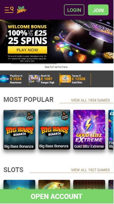 इसके अलावा, खिलाड़ी अपने मोबाइल उपकरणों के ज़रिए भी सभी खेलों और सुविधाओं का उपयोग कर सकते हैं। वेबसाइट एंड्रॉइड और आईओएस उपकरणों के लिए पूरी तरह से अनुकूलित है, और इसकी वजह से गुणवत्ता से कोई समझौता नहीं होता। खेलना शुरू करने के लिए आपको कोई अलग एप्लिकेशन डाउनलोड करने की ज़रूरत नहीं है। आपको बस अपने मोबाइल ब्राउज़र और स्लॉटजेरी कैसीनो में एक खाते की आवश्यकता है।