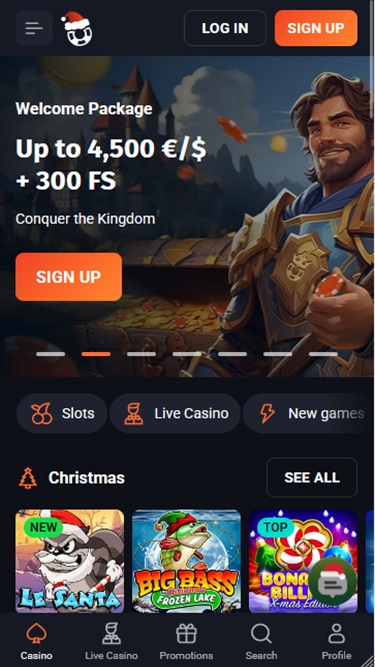 मुख्य पृष्ठ पर सबसे लोकप्रिय और नवीनतम खेलों के साथ-साथ सर्वोत्तम वर्तमान प्रचार भी प्रदर्शित होते हैं। यहाँ खिलाड़ी उपलब्ध सॉफ़्टवेयर प्रदाताओं और अक्सर चुनी जाने वाली भुगतान विधियों के बारे में भी जानकारी प्राप्त कर सकते हैं। वेबसाइट के सबसे नीचे, आप नियम और शर्तें, गोपनीयता नीति, लाइसेंसिंग और ज़िम्मेदार जुआ जैसे महत्वपूर्ण पृष्ठ देख सकते हैं।