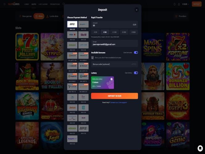 स्लॉटलॉर्ड्स कैसीनो ने इस काम को बखूबी समझा क्योंकि वे उपयोगकर्ताओं को 140 से ज़्यादा सॉफ़्टवेयर डेवलपर्स के गेम खेलने की सुविधा देते हैं, जिससे यह अब तक देखी गई सबसे व्यापक लाइब्रेरी में से एक बन गई है। सभी तरह के पंटर्स सैकड़ों ऐसे गेम पा सकते हैं जो बिना किसी समस्या के उनके लिए बिल्कुल सही होंगे।